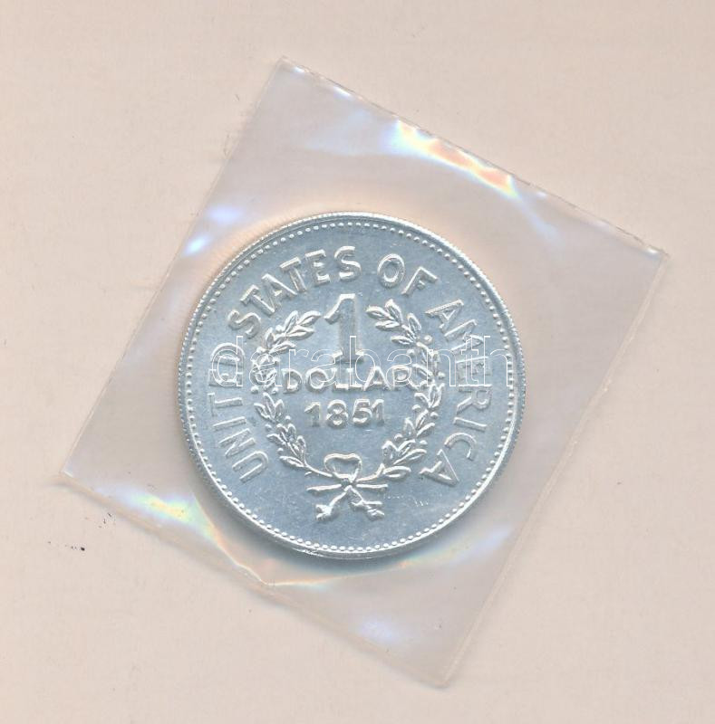 Leírás: USA 1851. 1$ Ag fém hamisítványa laminált fóliában T:1-