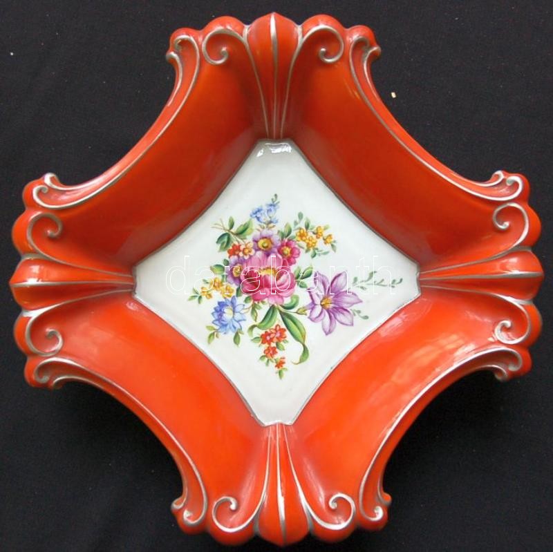 Leírás: 1912 Kézzel festett jelzett Ilmenau német porcelán tál /