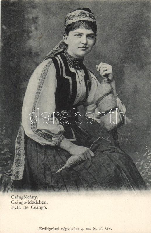 Hungarian folklore, Csángó woman https://www.darabanth.com/hu/158-Gyorsarveres/158.0/Kepeslapok/Folklor~600064/Hungarian-folklore-Csango-woman~II499611