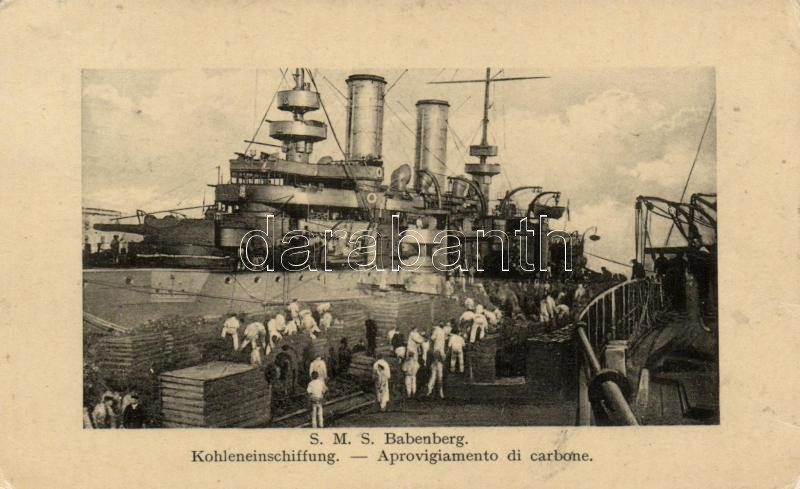 SMS Babenberg loading of coal https://www.darabanth.com/hu/158-Gyorsarveres/158.0/Kepeslapok/Hadihajo~600067/SMS-Babenberg-loading-of-coal~II501125