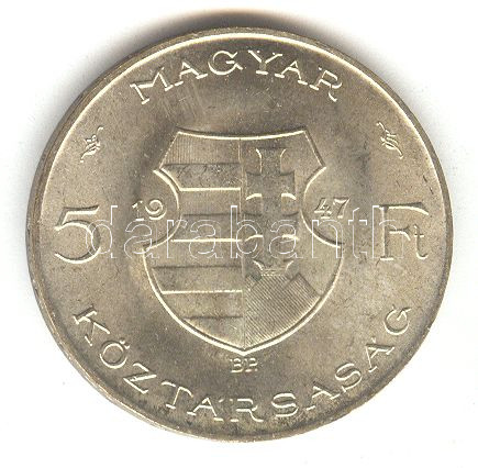 Leírás: 1947. 5Ft Ag "Kossuth" T:2 ph.