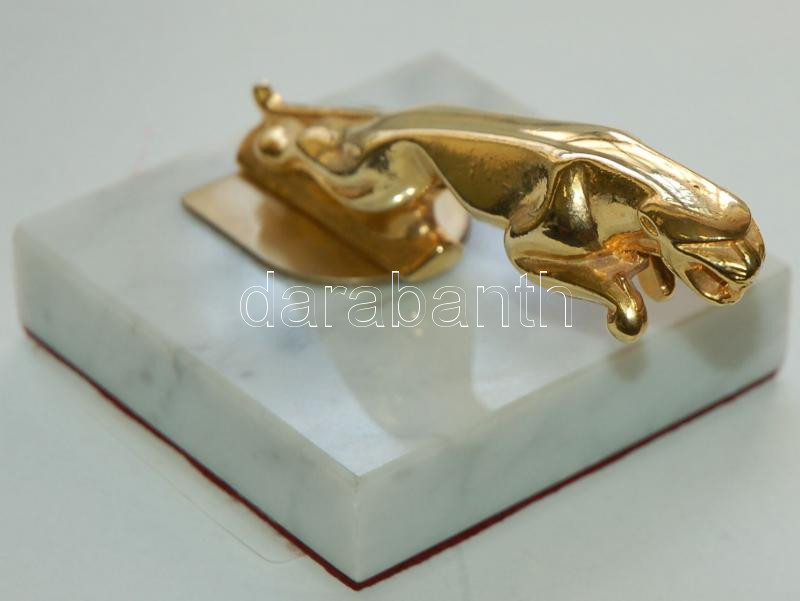Leírás: Aranyozott fém jaguár márványtalapzaton, hossza 13cm
