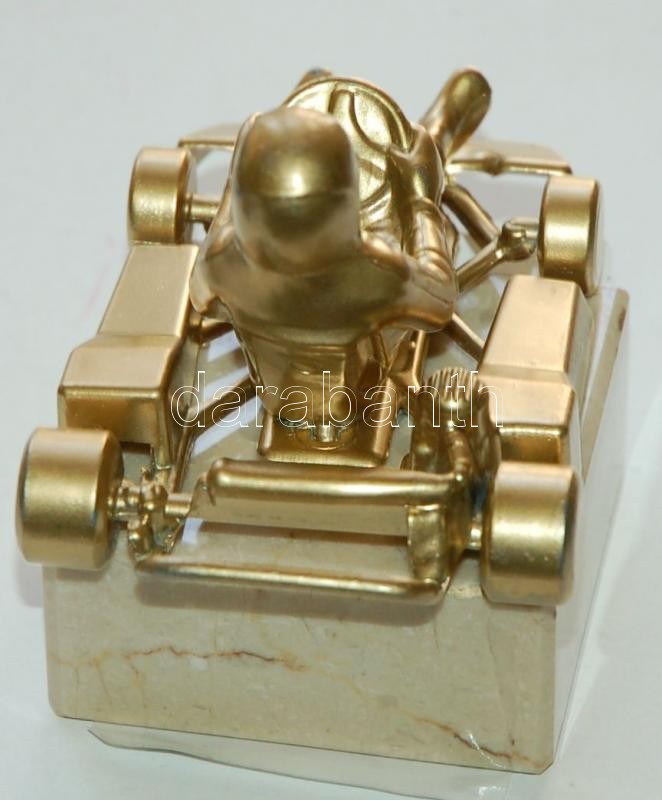 Leírás: Fém gokartozó figura márványtalapzaton, hossza 12cm