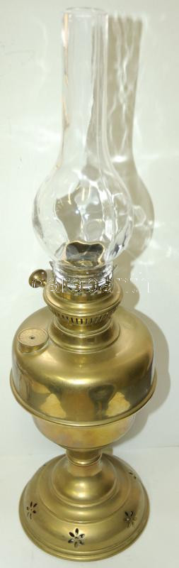 Leírás: Nagyméretű réz petróleum lámpa üveg búrával 50cm magas