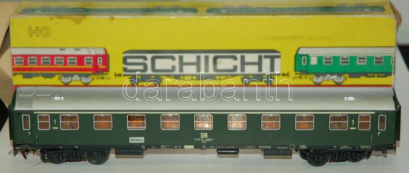 Leírás: Schicht H0 típusú vasút modell nagyméretű személyvagon eredeti dobozában /