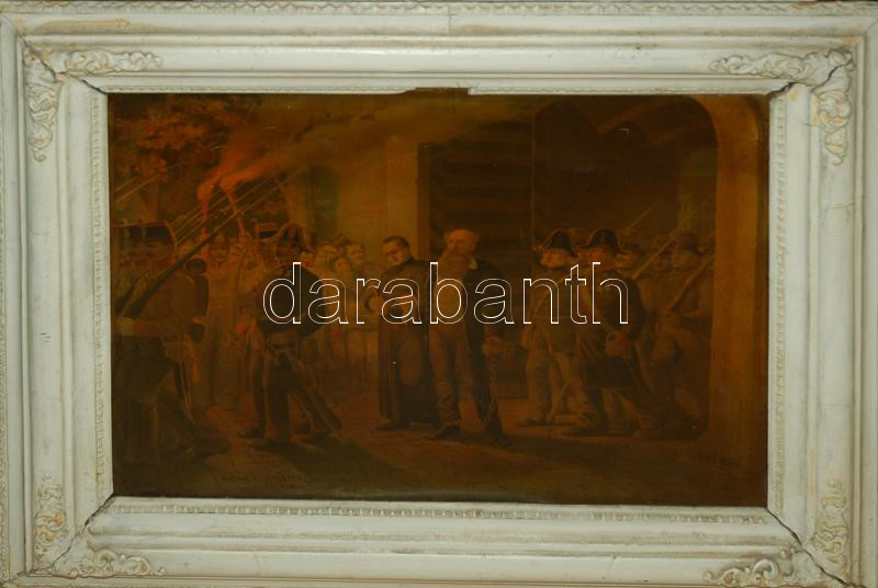 Leírás: cca 1880 Batthyány Lajost a veszőhelyre kísérik. Méhner Vilmos olajnyomata Jankó János fesménye nyomán. 50x40cm Hibás keretben