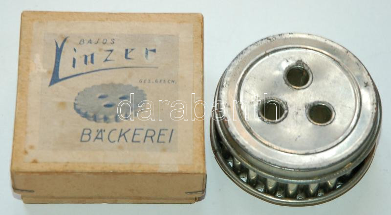 Leírás: cca 1900 Eredeti Linzer sütemény kiszúró dobozban