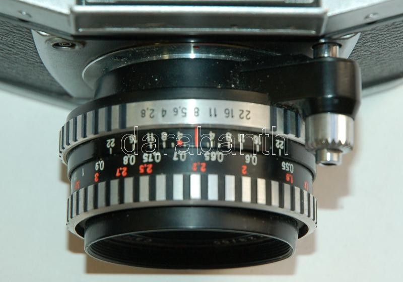 Leírás: NSZK gyártmányú fényképezőgép fényerősség 2,8 + Hanimex X150 típusú vaku /