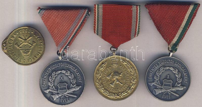 Leírás: 1960-70-es évek "Önkéntes tűzoltói szolgálatért" kitüntetés 10 éves (2x), 20 éves" szalaggal + 1933. "Szentgotthárdi Önkéntes Tűzoltó Egyesület Jubileuma" felvarrható jelvény T:2,2-