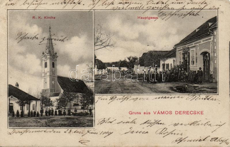 Leírás: Vámosderecske; church, shop (EK)