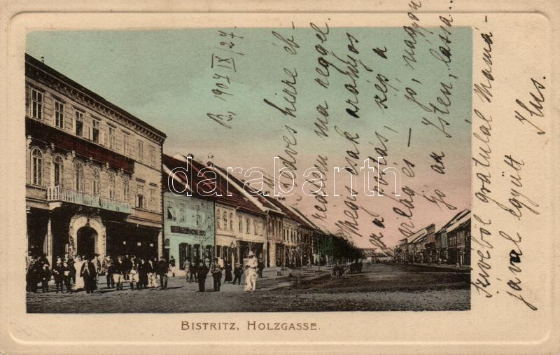 Beszterce Holzgasse / street https://www.darabanth.com/hu/16-Nagyaukcio/16.1/Magyar-kepeslapok/Erdely~4882/Beszterce-Holzgasse-street~II698000