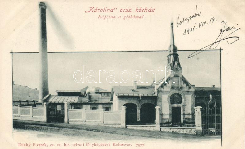 Kolozsvár Karolina hospital; chapel, power plant https://www.darabanth.com/hu/16-Nagyaukcio/16.1/Magyar-kepeslapok/Erdely~4882/Kolozsvar-Karolina-hospital-chapel-power-plant~II688405