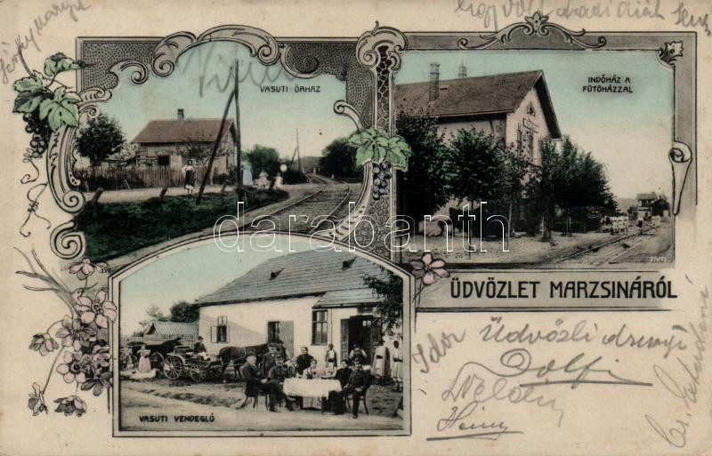 Leírás: Marzsina railway station with heating house, guard house, restaurant, floral