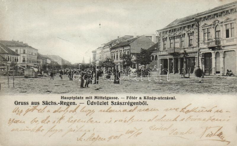 Szászrégen Főtér, Közép utca / main square (EB) https://www.darabanth.com/hu/16-Nagyaukcio/16.1/Magyar-kepeslapok/Erdely~4882/Szaszregen-Foter-Kozep-utca-main-square-EB~II696608