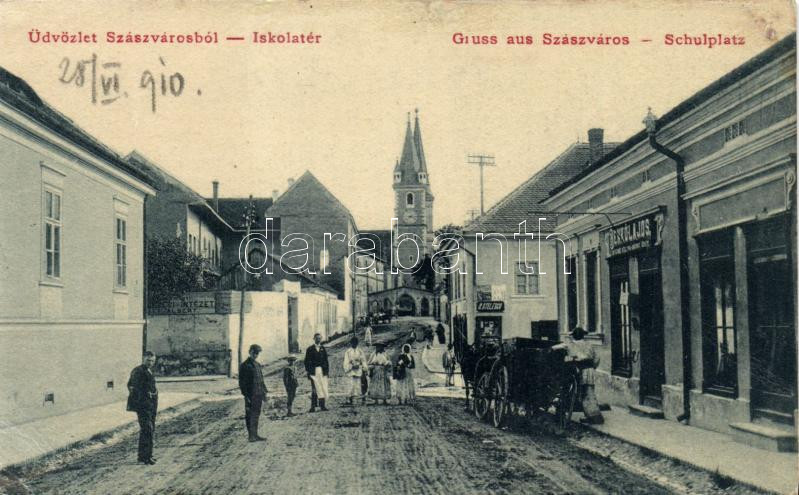 Leírás: Szászváros Iskola tér, Stelescu és Benkő Lajos üzletei / School square, shops (EB)