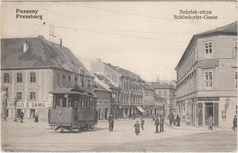 Pozsony Széplak utca, Schönbeck Ferenc Ferenc kereskedése / street, sh... https://www.darabanth.com/hu/16-Nagyaukcio/16.1/Magyar-kepeslapok/Felvidek~4883/Pozsony-Szeplak-utca-Schonbeck-Ferenc-Ferenc-kereskedese-street-shop~II688818
