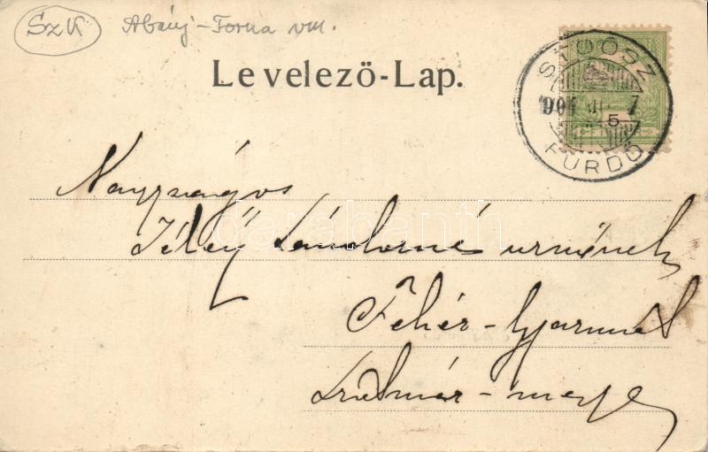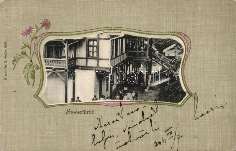 Stószfürdő, Art Nouveau litho https://www.darabanth.com/hu/16-Nagyaukcio/16.1/Magyar-kepeslapok/Felvidek~4883/Stoszfurdo-Art-Nouveau-litho~II696738