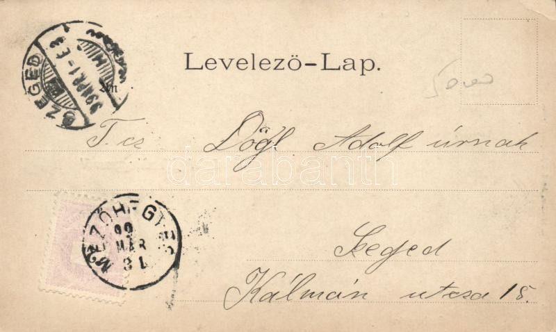 Leírás: 1899 Mezőhegyes kaszinó, elevator, cukorgyár; floral (EK)