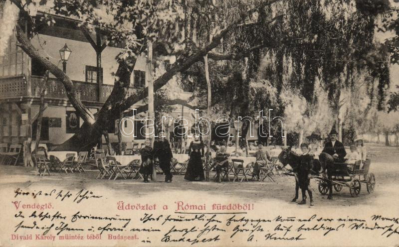 Leírás: Budapest III. Római fürdő, vendéglő, szamárfogat, Divald (fl)