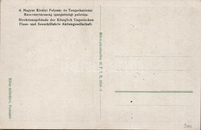 Budapest V. Folyam- és Tengerhajózási Részvénytársaság palotája, Klösz https://www.darabanth.com/hu/16-Nagyaukcio/16.1/Magyar-kepeslapok/Magyarorszag~4881/Budapest-V-Folyam-es-Tengerhajozasi-Reszvenytarsasag-palotaja-Klosz~II684679