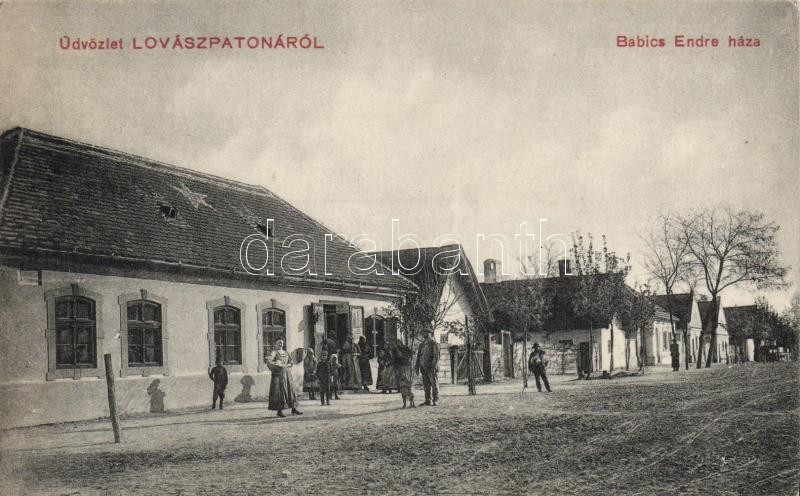 Lovászpatona, Babics Endre háza https://www.darabanth.com/hu/16-Nagyaukcio/16.1/Magyar-kepeslapok/Magyarorszag~4881/Lovaszpatona-Babics-Endre-haza~II694866