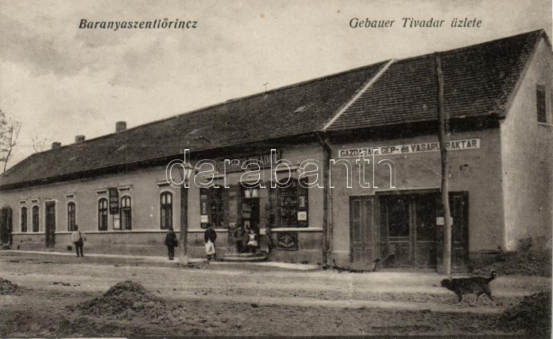 Szentlőrinc, Baranyaszentlőrinc; Gebauer Tivadar üzlete https://www.darabanth.com/hu/16-Nagyaukcio/16.1/Magyar-kepeslapok/Magyarorszag~4881/Szentlorinc-Baranyaszentlorinc-Gebauer-Tivadar-uzlete~II680607