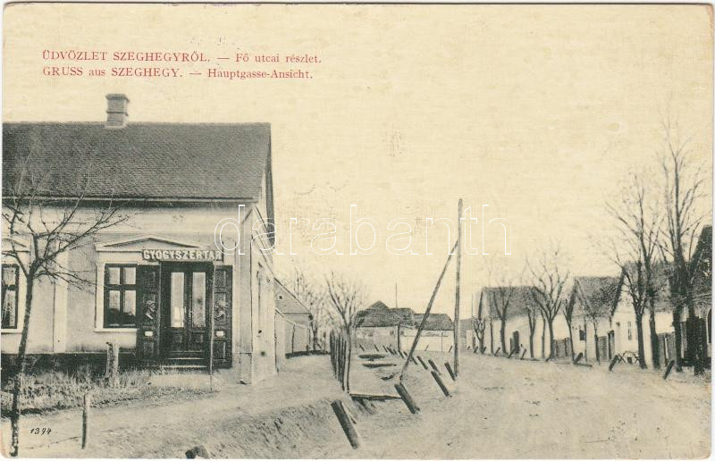 Szeghegy main street, pharmacy https://www.darabanth.com/hu/16-Nagyaukcio/16.1/Magyar-kepeslapok/Vajdasag~4888/Szeghegy-main-street-pharmacy~II692099