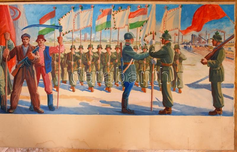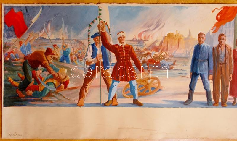 Ék Sándor (1902-1975): A magyar történelem. Freskó terv. Akvarell, papír, jelzett, összetekerve, /