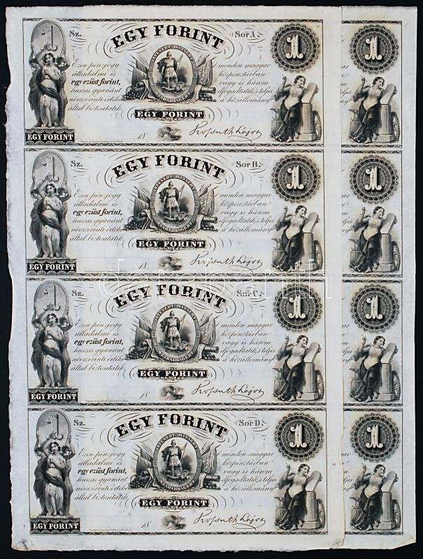 1852. 1Ft "Kossuth bankó" kitöltetlen A,B,C,D 4-es ívben (2x) nyomdai ujjlenyomatok pár helyen T:I,I-