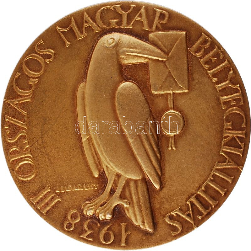 Hungary 1938. "Third Hungarian Stamp Exhibition" commemorative Ag medallion with mark on edge. Sign: Walter Madarassy (84.3g/60.4mm) C:UNC