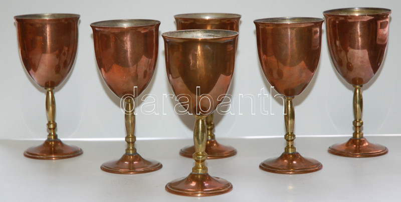 Leírás: 6db vörös- és sárgarézzel bevont alpakka boroskupa, 14,5cm
