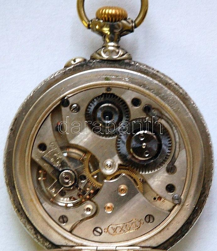 Leírás: 1906 Doxa Anti-Magnétique nagyméretű ezüst (Ag) vasutas zsebóra porcelán számlappal (sérült!), másodpercmutatóval, szép szecessziós díszítéssel /