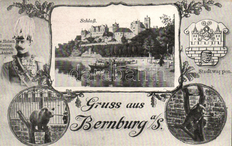Leírás: Bernburg Castle, Friedrich von Anhalt, crest of the city, bears