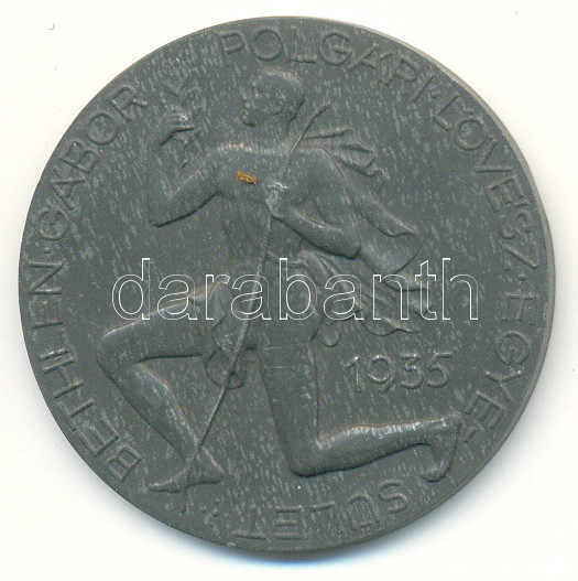 Leírás: 1935. "Bethlen Gábor-Polgári Lövészegyesület" fém plakett (41mm) T:2
