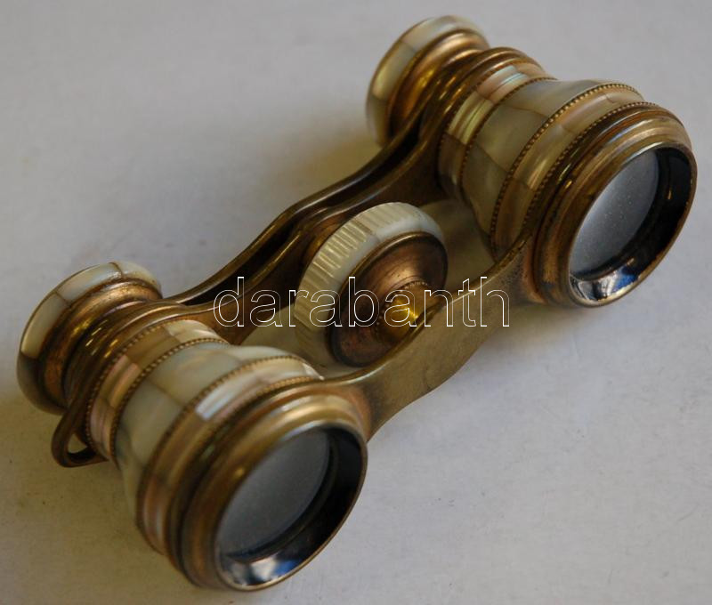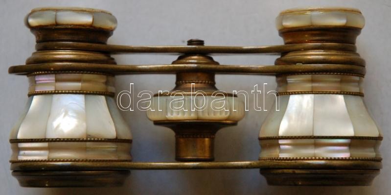 Cca 1900 Calderoni és Társa gyöngyházberakású kis réz színházi látcső nagyon szép állapotban /