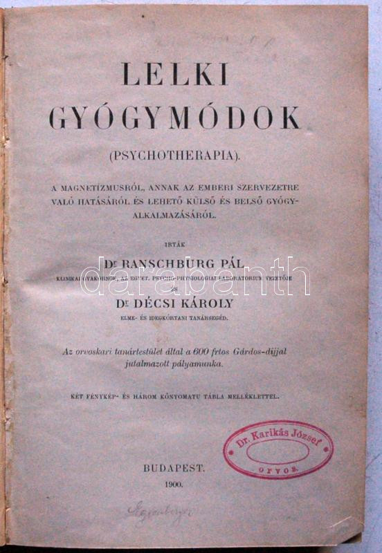 Ranschburg Pál, Dr. Décsi Károly: Lelki gyógymódok (Psychotherapia). Budapest, 1900. Franklin 272p+2 kihajtható mell Félvászon-kötésben. (Gerinc kissé feslett, egyébként szép)