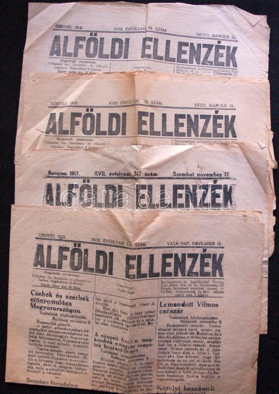 Leírás: 1917-1918 A szentesen megjelenő Alföldi Ellenzék c. lap 4 db száma a háború híreivel