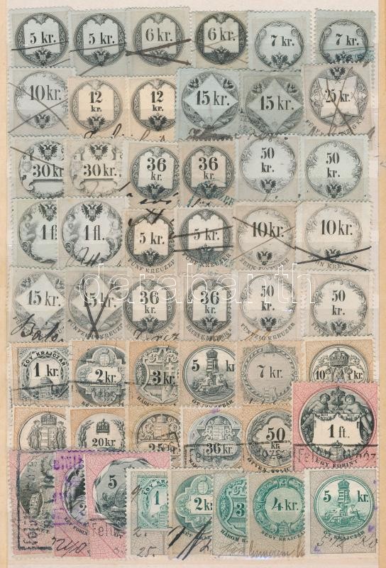 Leírás: 100 klf régi okmánybélyeg berakólapon
