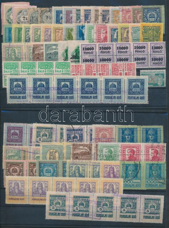 Leírás: 92 db magyar okmánybélyeg közte sok összefüggés