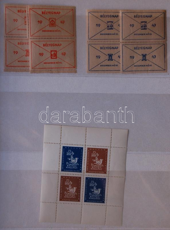 Leírás: 1942 Bélyegnap levélzáró kisív 1947 Bélyegnap levélzáró 4 db pár