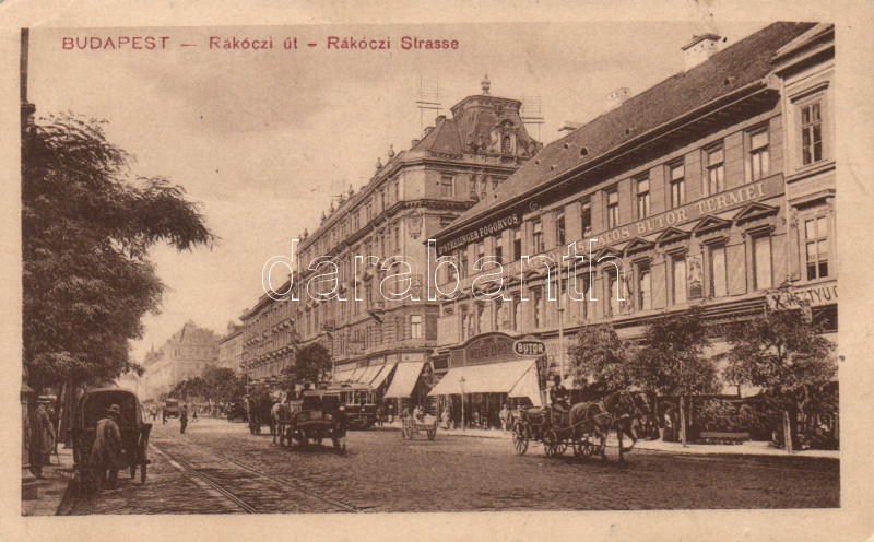Budapest VII. Rákóczi út, Weisz Lipót, Szabó Ferenc kereskedései https://www.darabanth.com/hu/161-Gyorsarveres/161.0/Kepeslapok/Magyarorszag~662/Budapest-VII-Rakoczi-ut-Weisz-Lipot-Szabo-Ferenc-kereskedesei~II518877