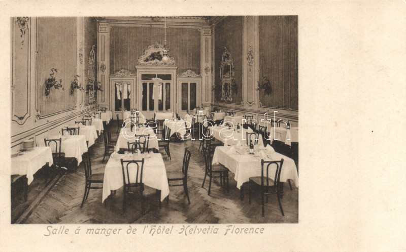 Florence Hotel Helvetia dining hall interior https://www.darabanth.com/hu/161-Gyorsarveres/161.0/Kepeslapok/Olaszorszag~500077/Florence-Hotel-Helvetia-dining-hall-interior~II520103