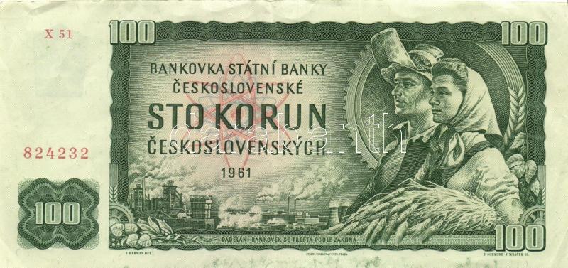 Czechoslovakia 1961. (19... https://www.darabanth.com/hu/161-Gyorsarveres/161.0/Numizmatika/Kulfoldi-bankjegyek~500154/Csehszlovakia-1961-1990-92-100K-3x-TII--3Cbr3ECzechoslovakia-1961-1990-92-100-Korun-3x-C~II518616