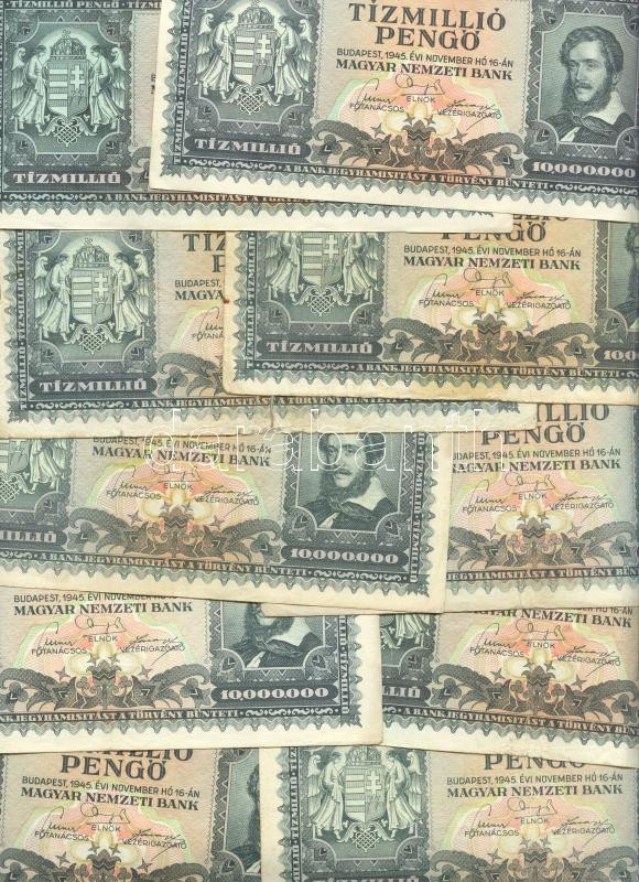 1945. 10.000.000P (23x) T:II,III https://www.darabanth.com/hu/161-Gyorsarveres/161.0/Numizmatika/Magyar-bankjegyek~500142/1945-10000000P-23x-TII-III~II517347
