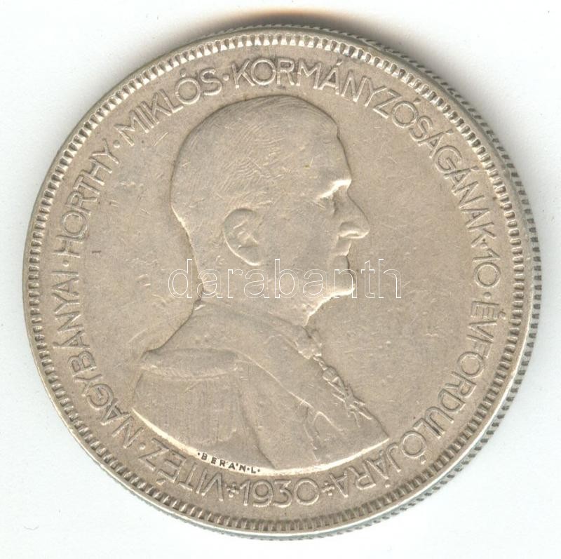 Leírás: 1930. 5P Ag "Horthy jobbra" T:3