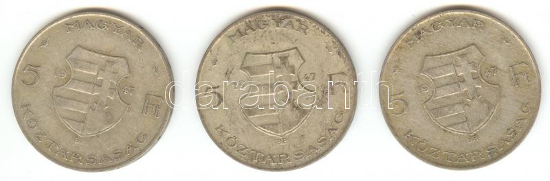 1947. 5Ft Ag "Kossuth" (3x) T:3 https://www.darabanth.com/hu/161-Gyorsarveres/161.0/Numizmatika/Magyar-fem-es-ezustpenzek~500143/1947-5Ft-Ag-Kossuth-3x-T3~II515646