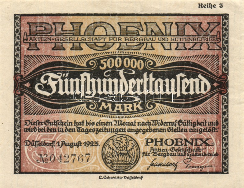 Német Birodalom/Weimari Köztársaság/Düsseldorf-Phoenix/Düsseldorf 1923... https://www.darabanth.com/hu/161-Gyorsarveres/161.0/Numizmatika/Papir-es-fem-szuksegpenzek~500141/Nemet-BirodalomWeimari-KoztarsasagDusseldorf-PhoenixDusseldorf-192381-500000M-plus-19238~II518946