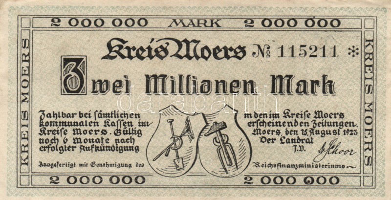 Német Birodalom/Weimari Köztársaság/Moers 1923.8.15. 2.000.000M (2x) +... https://www.darabanth.com/hu/161-Gyorsarveres/161.0/Numizmatika/Papir-es-fem-szuksegpenzek~500141/Nemet-BirodalomWeimari-KoztarsasagMoers-1923815-2000000M-2x-plus-1923825-1000000M-TI~II518872