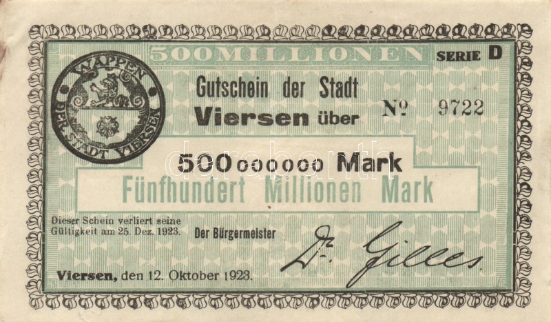 Leírás: Német Birodalom/Weimari Köztársaság/Viersen 1923.9.17. 100.000.000M + 1923.9.18. 200.000.000M + 1923.10.12. 500.000.000M T:II