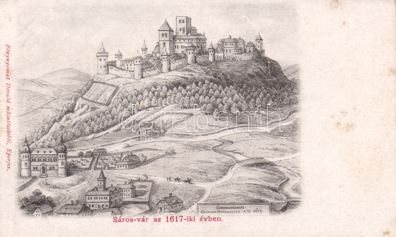 Nagysáros castle in 1617, Divald https://www.darabanth.com/hu/162-Gyorsarveres/162.0/Kepeslapok/Felvidek~500007/Nagysaros-castle-in-1617-Divald~II525585